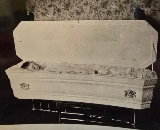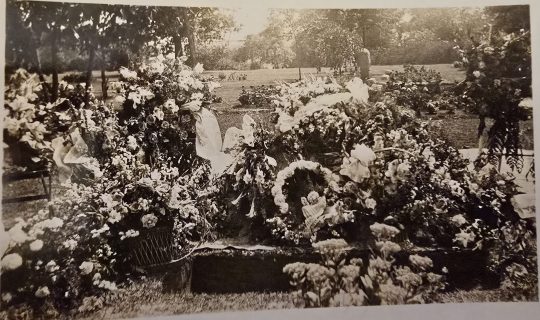 Because of the diphtheria we were not allowed a regular funeral. Only the closest relatives were permitted to get a glimpse of her and the flowers could not be brought in but had to be in the basement until taken to the cemetery. The undertaker was a friend of Arthur’s family and made things as easy as possible. Evelyn’s little body could not even be brought into the front room. She lay on her bed wrapped in a sheet until the day of the funeral when she was placed in her little casket. The sheet was supposed to cover her face and be sealed after the embalming but he left it so we could look at her when we wished.